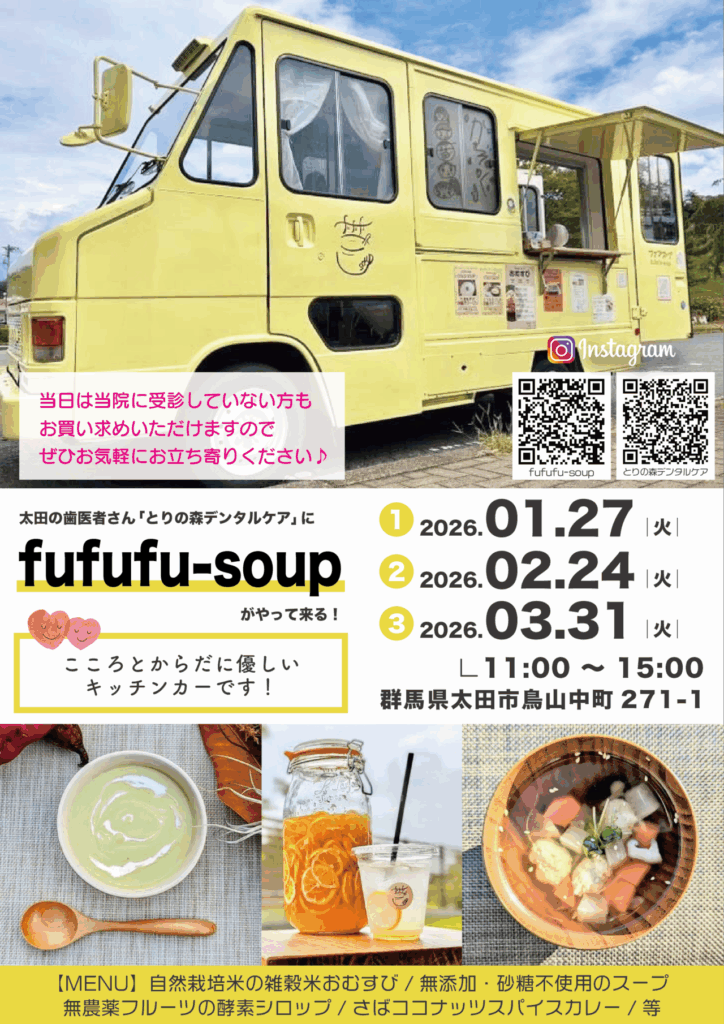普段は前橋や渋川方面が多いとのことですので、太田方面の方、この日のお昼ご飯・おやつはfufufu-soupで決まりですね♪